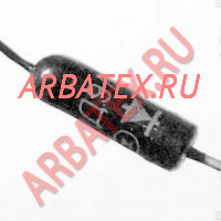 Имеет стеклянный корпус и гибкие выводы.
