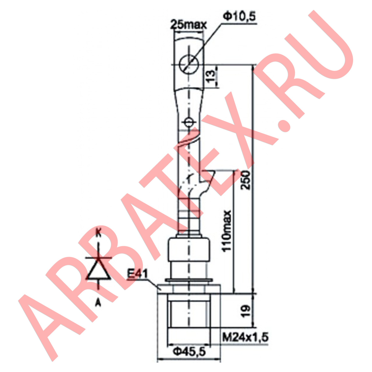 • Uoбp макс, В - Максимальное постоянное обратное напряжение