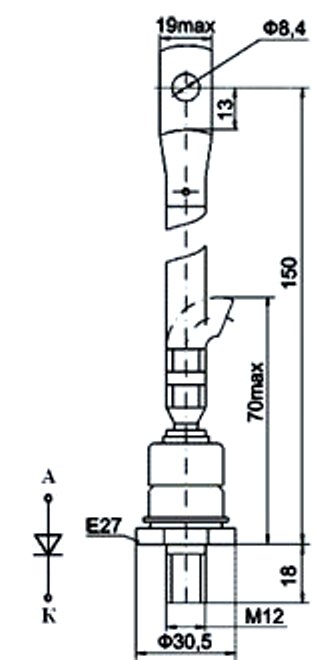 Диод Д151-160Х-12 кремниевый диффузионный обратной полярности.
