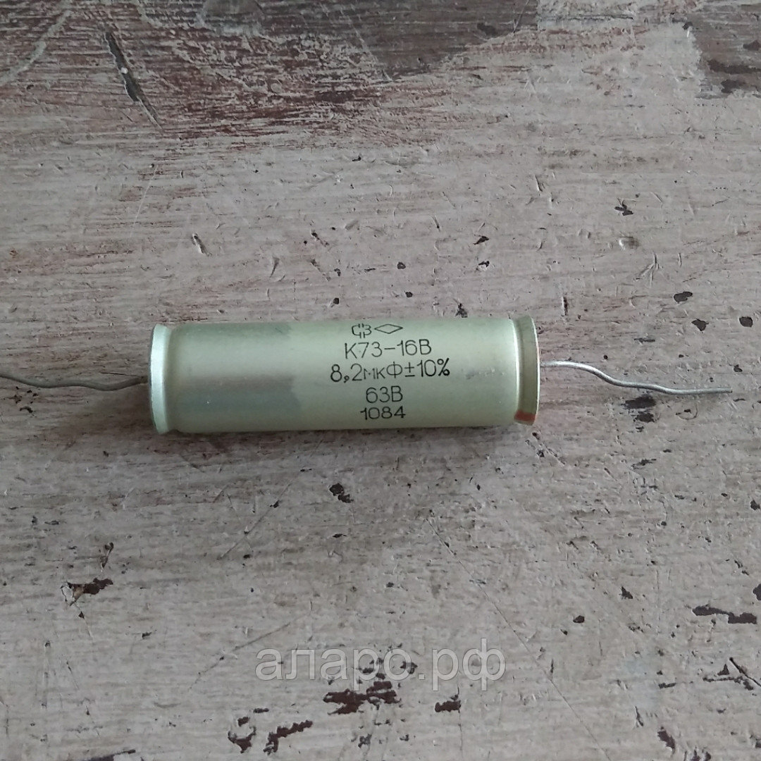 К73-16 100В 8,2 мкФ конденсатор постоянной емкости полиэтилентерефталатный (лавсановый, майларовый) металлизированный. Предназначен для работы в цепях постоянного, переменного, пульсирующего токов и в импульсных режимах. Характеризуются высоким сопротивлением изоляции и высокой температурной стабильностью параметров. Конструкция: алюминиевый корпус, разнонаправленные (аксиальные) выводы.