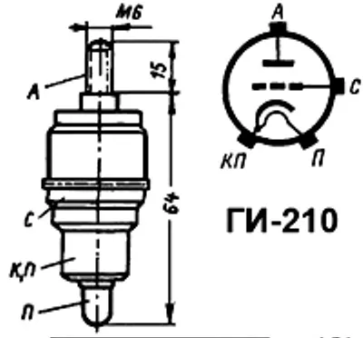 ГИ-210 импульсный генераторный триод устройство, использующее световые и электромагнитные колебания для своей работы: генерации, детектирования, преобразования и передачи информационного сигнала. широко используется в микроэлектронной и электротехнической аппаратуре для обеспечения электрической развязки при передаче информационных сигналов.  Состоит из вакуумно-герметичной, жесткой оболочки, внутри которой отсутствует кислород.