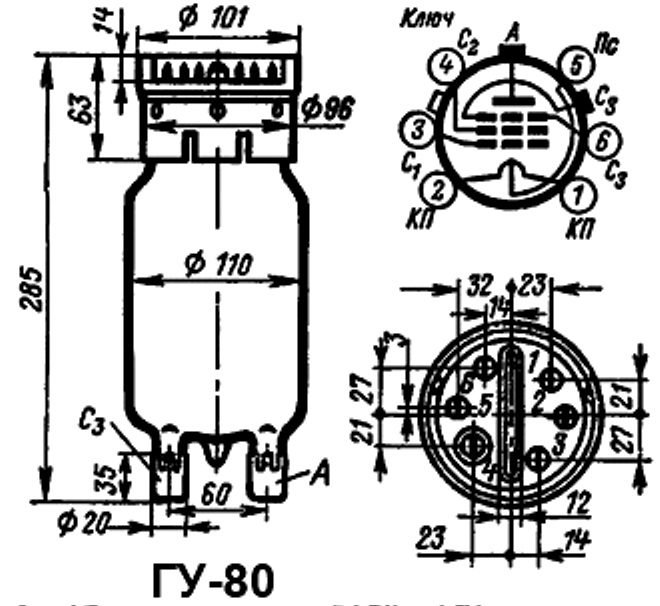 ГУ-80 генераторный пентод относится к разделу электровакуумных приборов и ламп различного назначения. По конструкции генераторный пентод состоит из вакуумно-герметичной, жесткой оболочки, внутри которой отсутствует кислород.