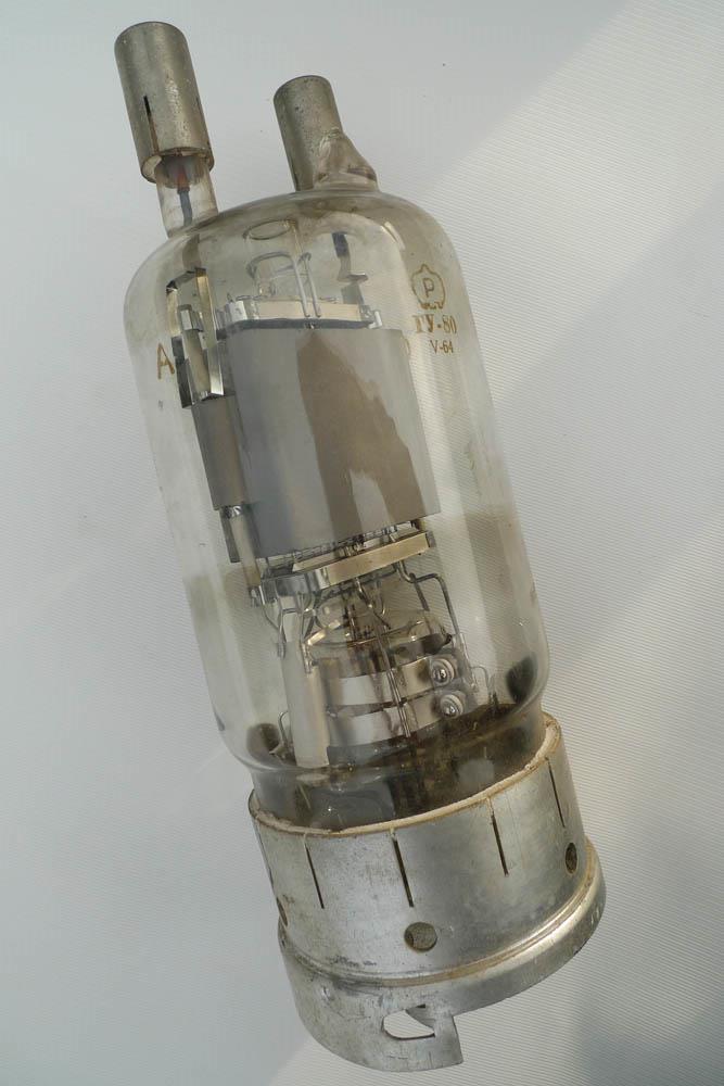 Генераторный пентод ГУ-80 для усиления высокочастотных колебаний на частотах до 50 МГц.