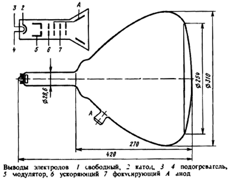 Трубка электронно-лучевая приемная индикаторная монохромная без запоминания.