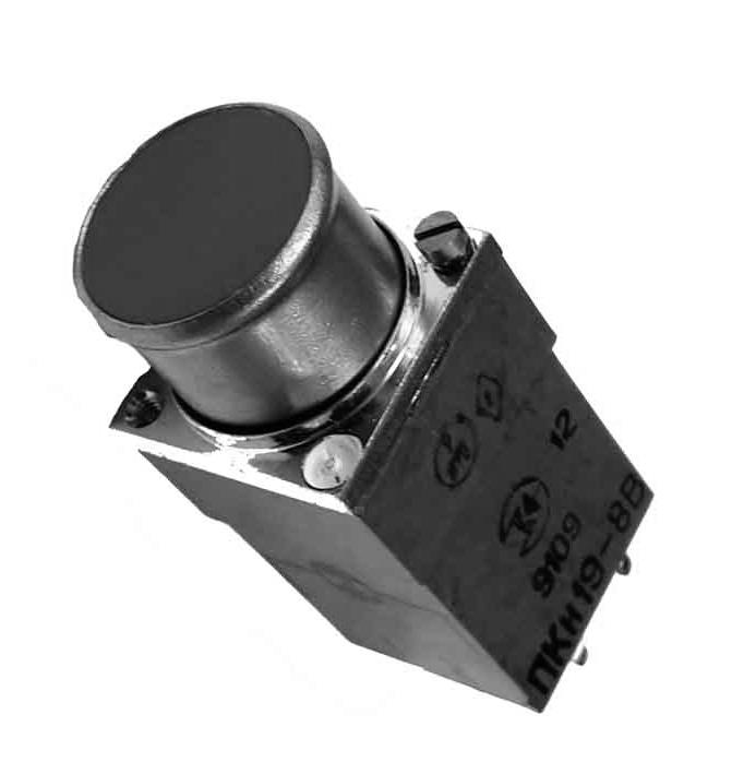 ПКН19-7В переключатель кнопочный  двухполюсный с двумя степенями освещенности, содержат две независимые переключаемые группы и два источника света, применяется для работы в электрических цепях постоянного и переменного тока радиоэлектронной аппаратуры.
