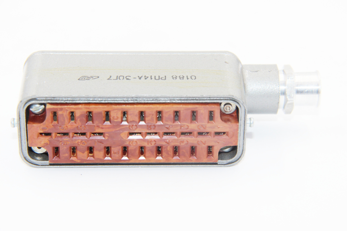 Приборно-кабельные соединители РП14А-30Г7 предназначены для соединения и разъединения низкочастотных низковольтных электрических цепей электро и радиотехнических устройств постоянного тока или переменного тока с частотой до 3 МГц и импульсного токов напряжением до 800 В.