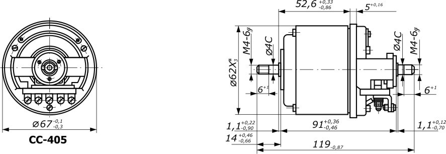 Контактные сельсины СС-405ТВ выполнены в соответствии с асинхронными электродвигателями с ротором небольшой мощности. Статор сельсина СС-405ТВ не явнополюсной, обмотки— распределенные.
