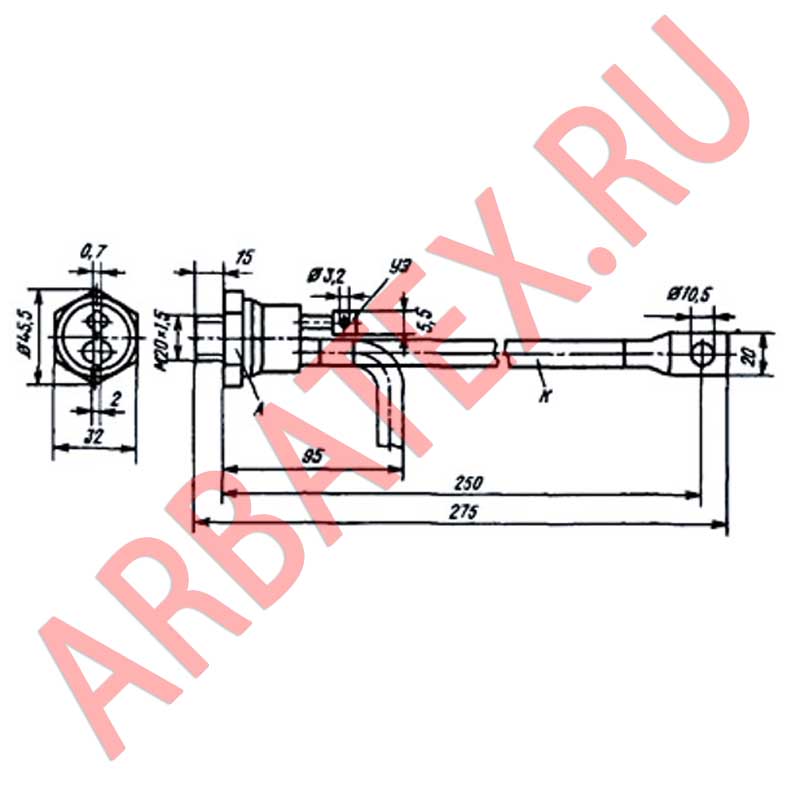 Т100-11 - низкочастотный тиристор штыревого исполнения.