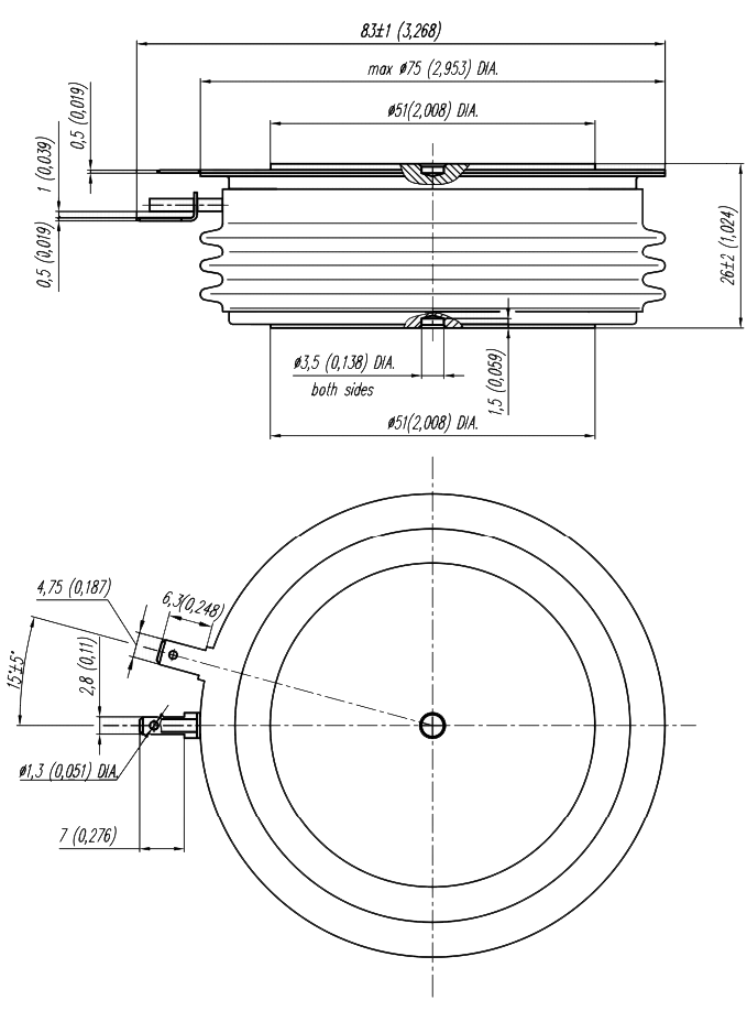 Т153-800-15 - низкочастотный тиристор таблеточного исполнения.