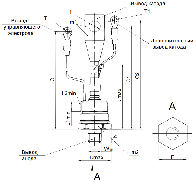 Масса тиристора не более 560 г.