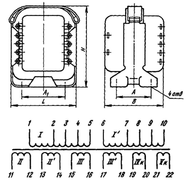 Трансформаторы анодные типа ТА изготавливают на стержневых и броневых магнитопроводах унифицированной конструкции, мощностью от 12 до 510 В*А с выходным напряжением 28...1260 В на токи нагрузки 25...1000 мА.
